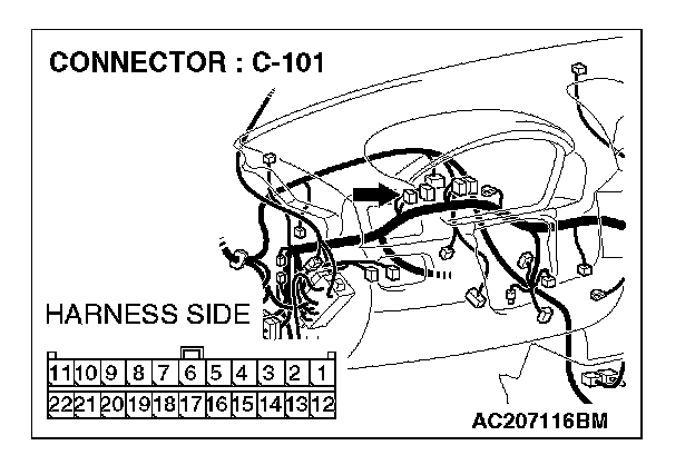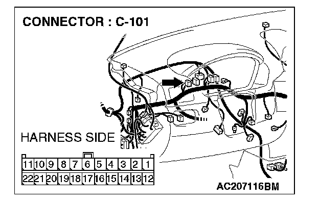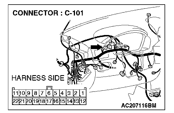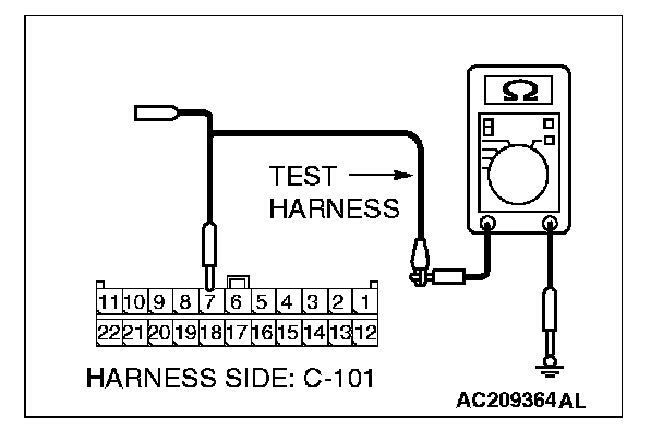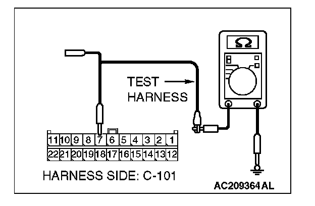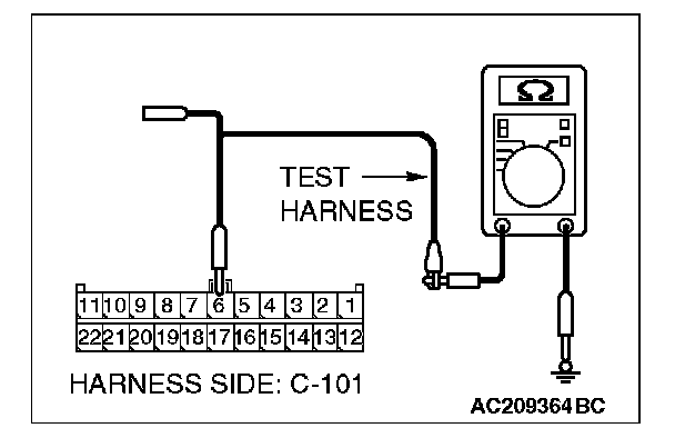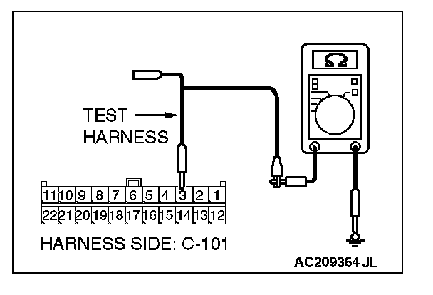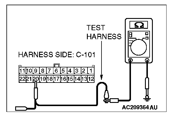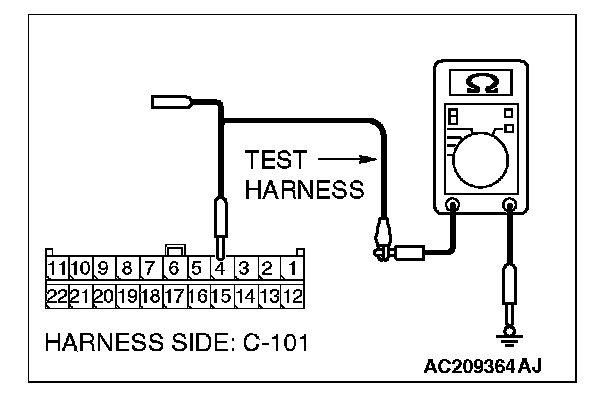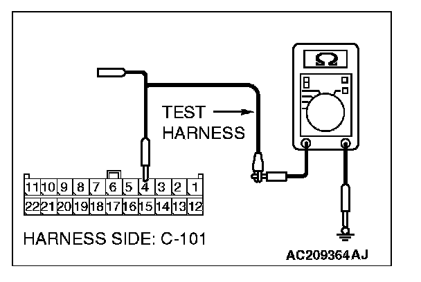 1. Disconnect joint connector (4) C-101 and ETACS-ECU connector C-218, and measure the resistance at the wiring harness side of joint connector (4) C-101.