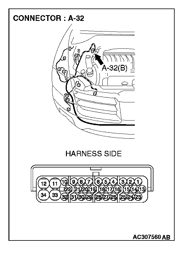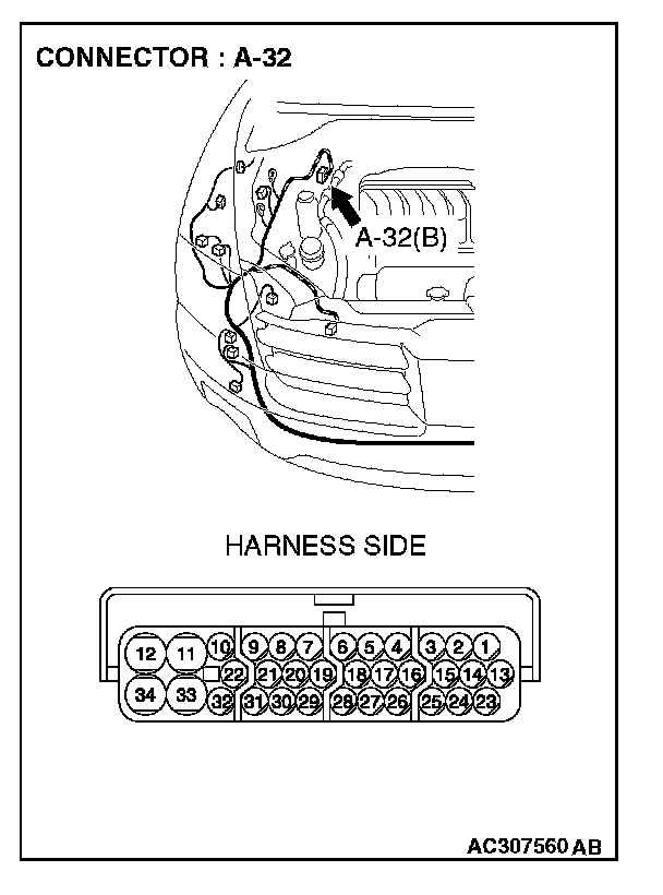 STEP 30. Check ASC/TCL-ECU connector A-32 for loose, corroded or damaged terminals, or terminals pushed back in the connector.
