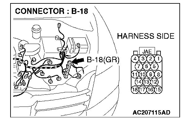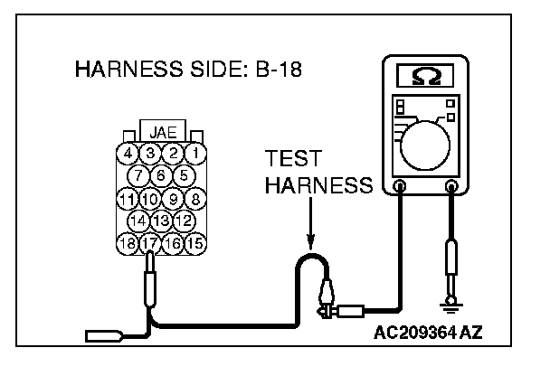 1. Disconnect powertrain control module connector B-18 and ASC/TCL-ECU connector A-32, and measure the resistance at the harness side of powertrain control module connector B-18.