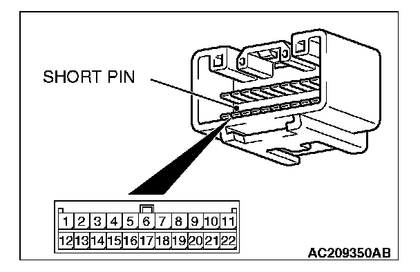 Check the joint connector at the wiring harness side for loose, corroded or damaged terminals, or terminals pushed back in the connector, and also check the short pin behind the connector for corrosion, deformation and delamination.