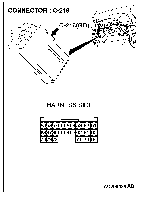 STEP 40. Check ETACS-ECU connector C-218 for loose, corroded or damaged terminals, or terminals pushed back in the connector.