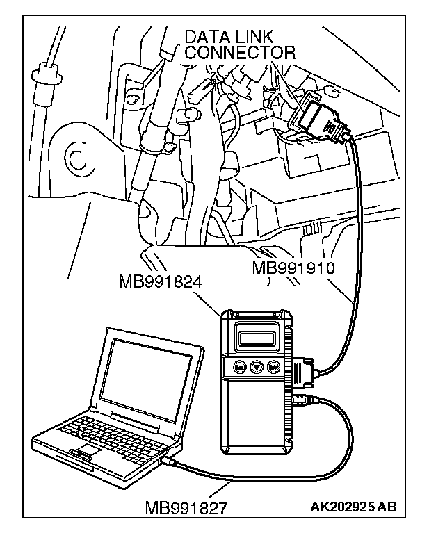 CAUTION: To prevent damage to scan tool MB991958, always turn the ignition switch to the "LOCK" (OFF) position before connecting or disconnecting scan tool MB991958.