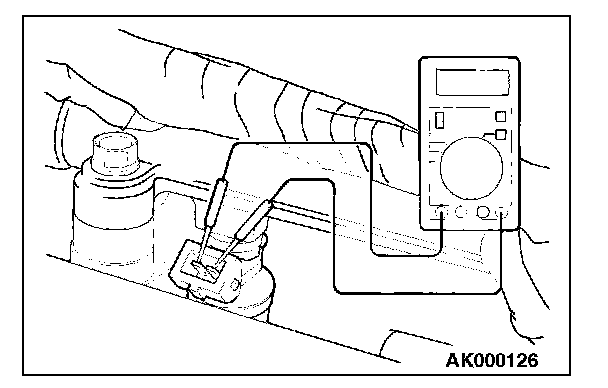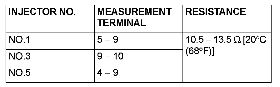 2. Measure the resistance between injector side connector terminals 1 and 2.