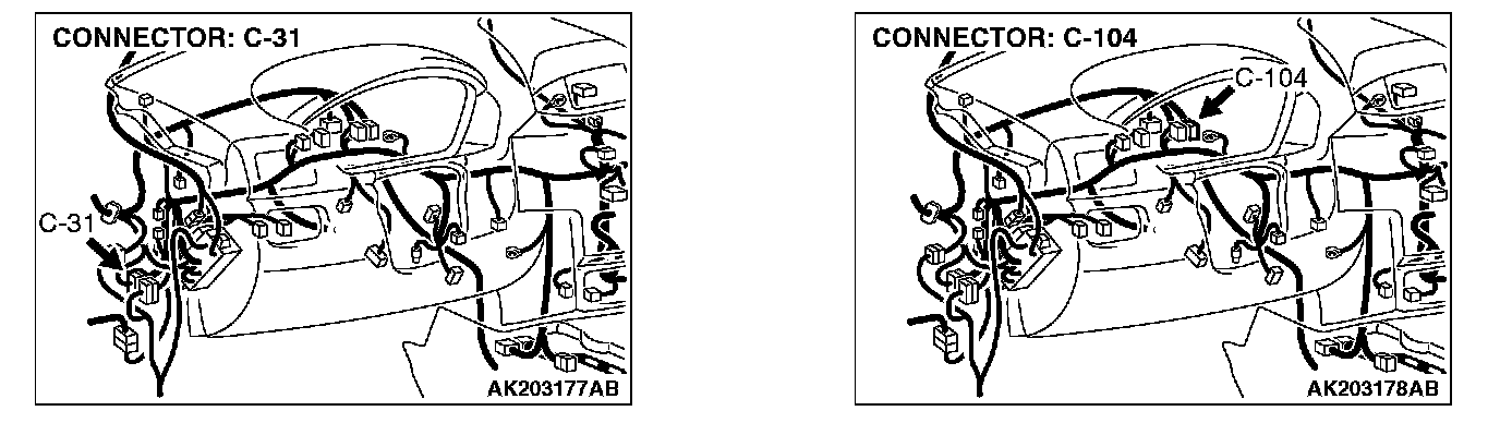 NOTE: Check harness after checking intermediate connectors C-31 and C-104. If intermediate connector C-31 and C-104 are damaged, repair or replace them. Refer to Harness Connector Inspection. Then check that the malfunction is eliminated.