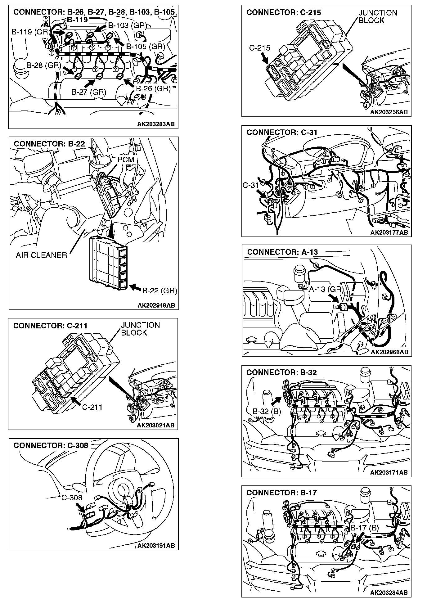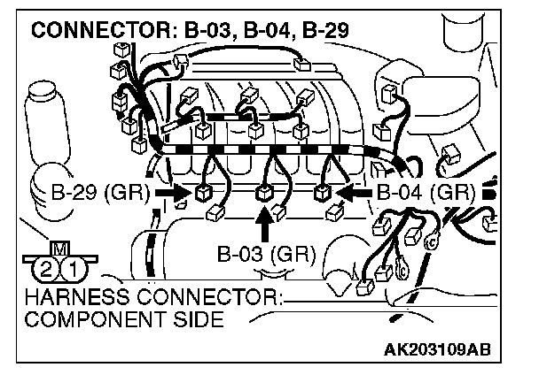 1. Disconnect the left bank injector connector B-03, B-04, B-29.