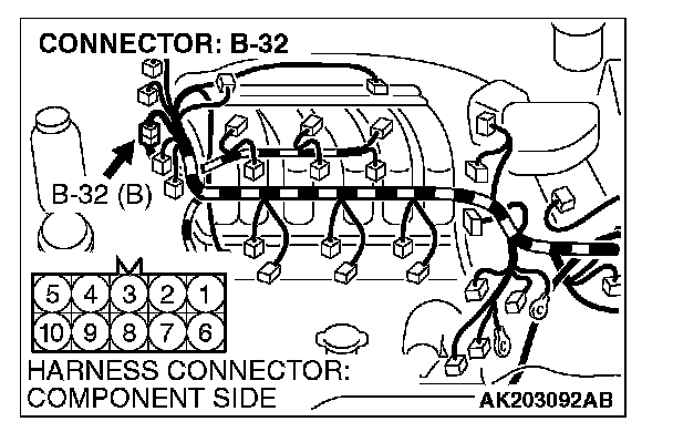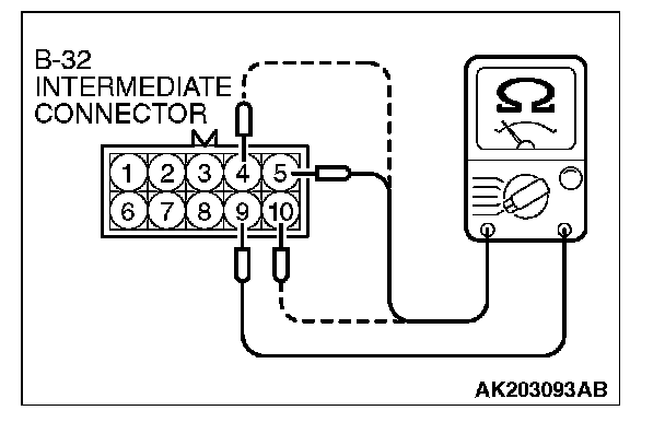 STEP 9. Check the right bank injector resistance at intermediate connector B-32.