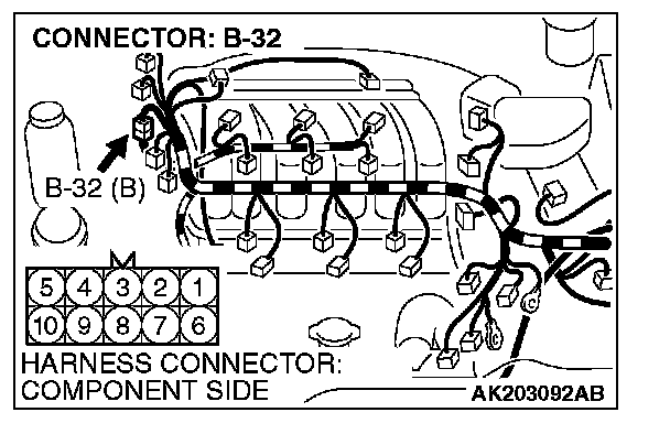 STEP 11. Check harness connector B-32 at the intermediate connector for damage.