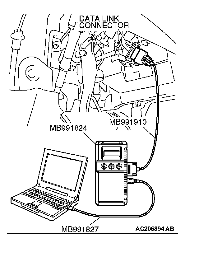 CAUTION: To prevent damage to scan tool MB991958, always turn the ignition switch to the "LOCK" (OFF) position before connecting or disconnecting scan tool MB991958.