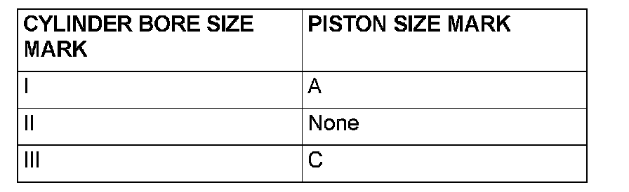 Piston to bore clearance 0.02 - 0.04 mm (0.0008 - 0.0015 inch)