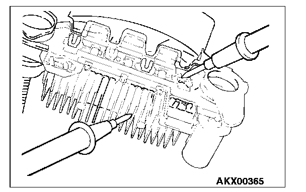 2. Check the continuity between the negative rectifier and the stator coil lead connection terminal with a tester. If there is continuity between the terminals, the diode is grounded, so replace the rectifier.