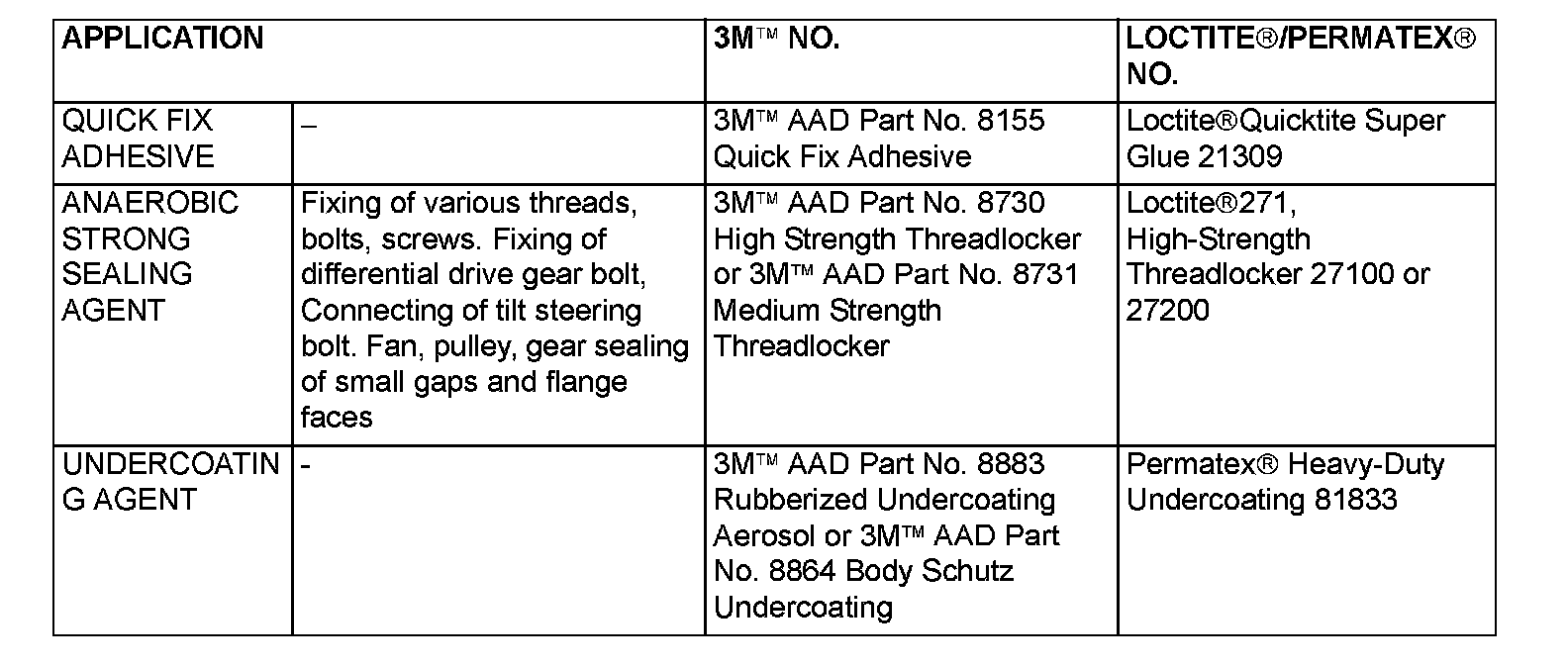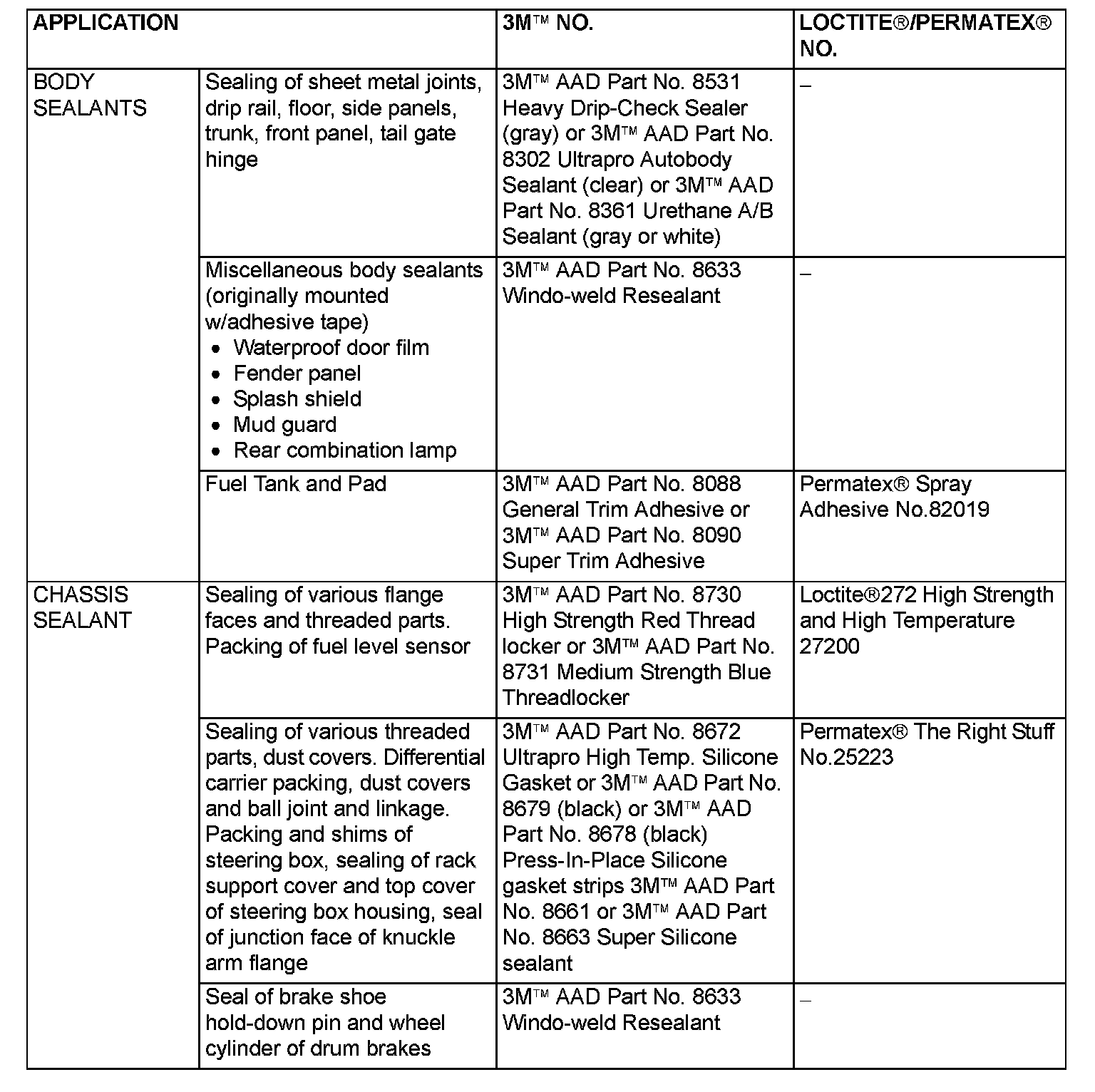 MAIN SEALANT AND ADHESIVE TABLE (PART 3):