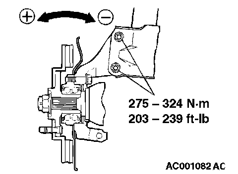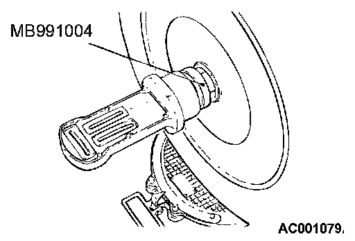 NOTE: For vehicles with aluminum type wheels, attach a camber/caster/kingpin gauge to the driveshaft by using special tool MB991004. Tighten special tool MB991004 to the same torque 196 - 255 Nm (145 - 198 ft. lbs.) as the driveshaft nut.