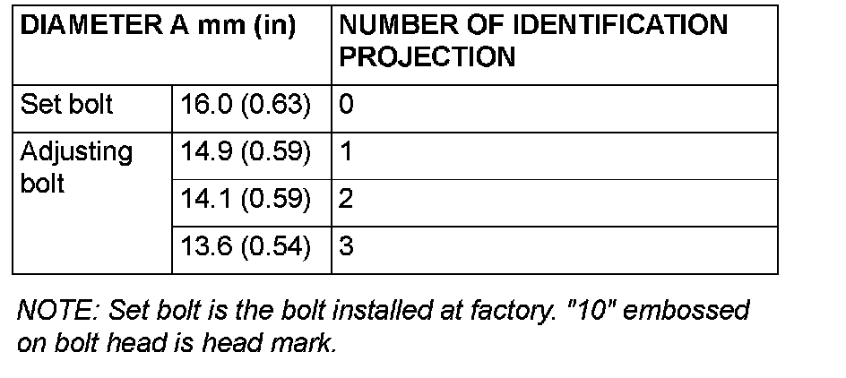 NOTE: Set bolt is the bolt installed at factory. "10" embossed on bolt head is head mark.