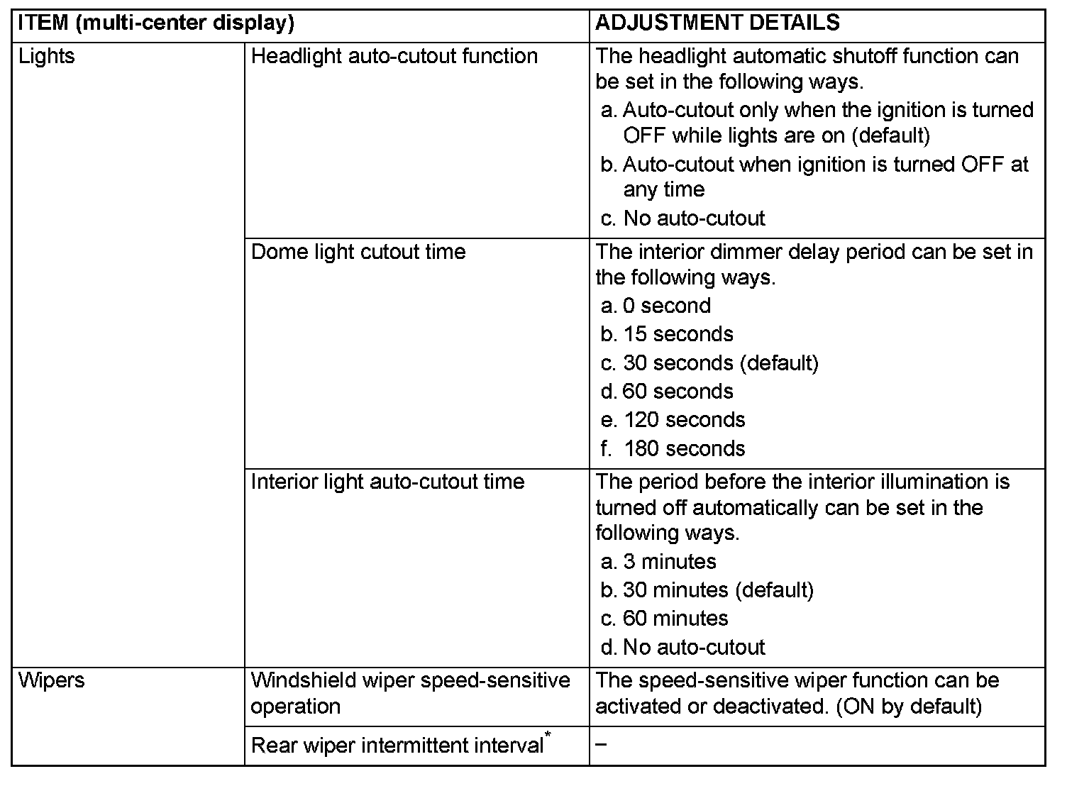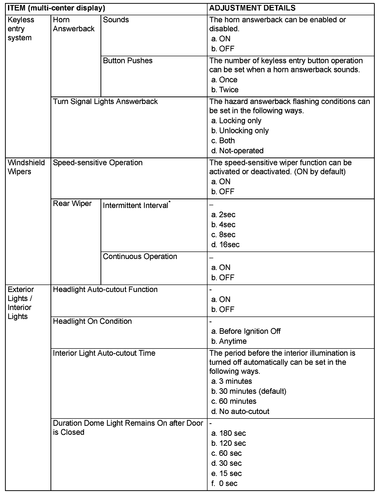 ADJUSTMENT BY OPERATING THE MULTI-CENTER DISPLAY [VEHICLES WITH MIDDLE-GRADE MULTI-CENTER DISPLAY ONLY]