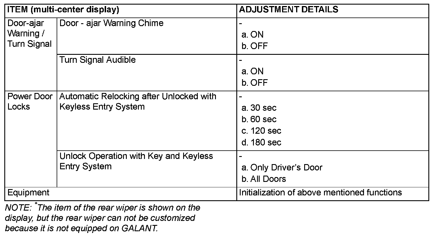 ADJUSTMENT BY OPERATING THE MULTI-CENTER DISPLAY [VEHICLES WITH MITSUBISHI MULTI COMMUNICATION SYSTEM]