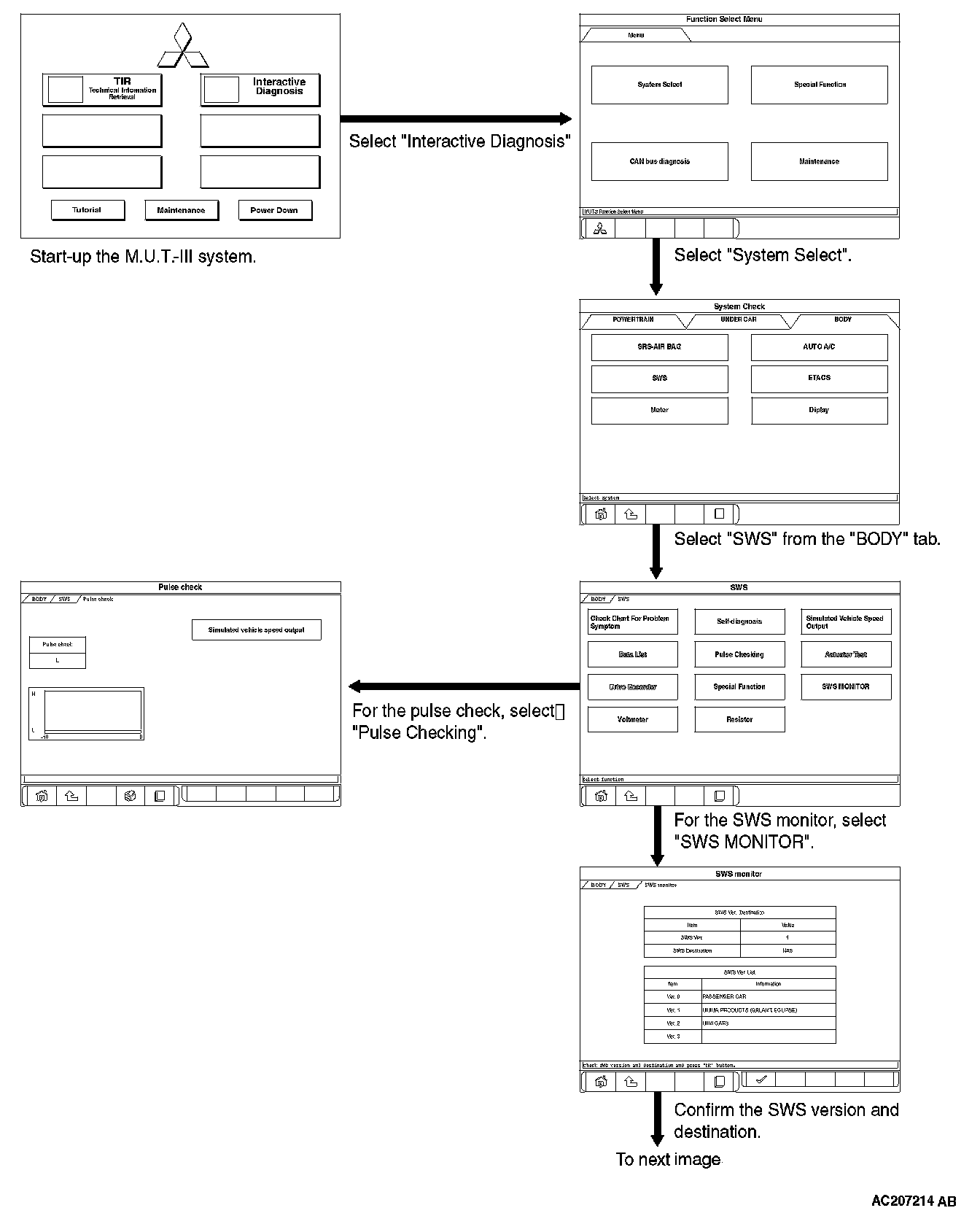 To carry out troubleshooting, operate scan tool MB991958 (M.U.T.-III Sub Assembly).