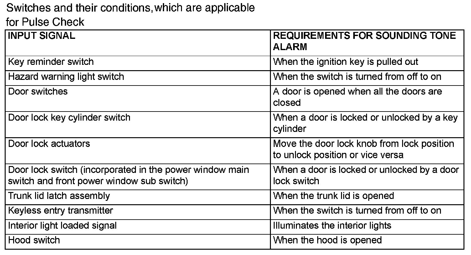 NOTE: If a problem is found in the Pulse Check, refer to Input Signal Chart. Input Signal Chart