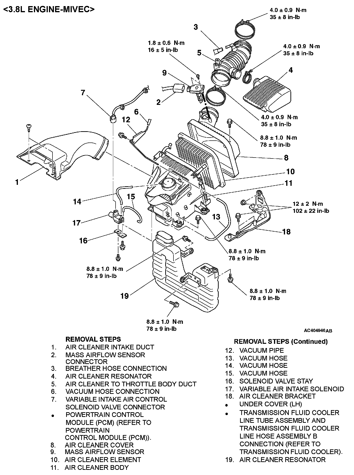 Removal Steps 1 - 19: