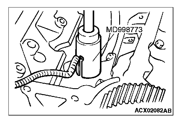 Use special tool MD998773 to tighten the knock sensor to the specified torque in the same manner as removal.