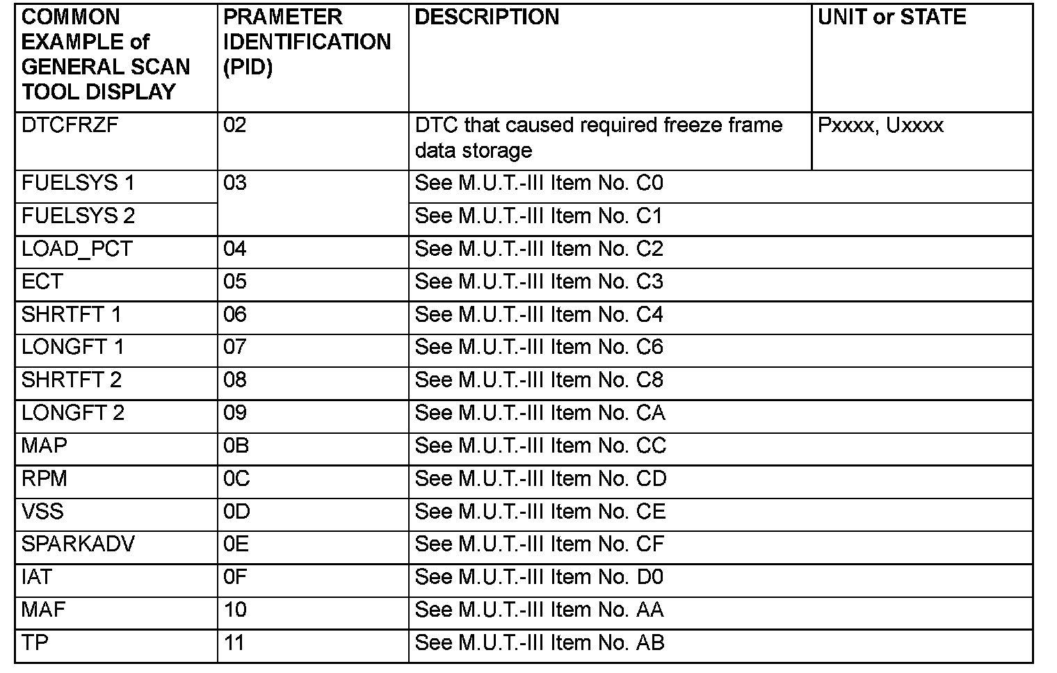 Freeze Frame Data Item for General Scan Tool Part 2: