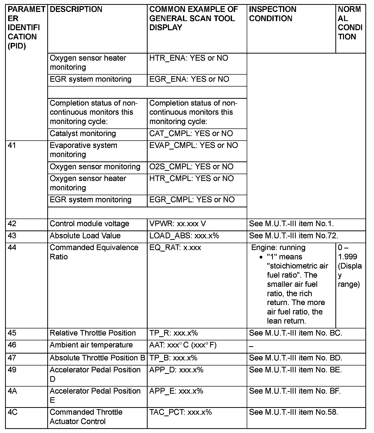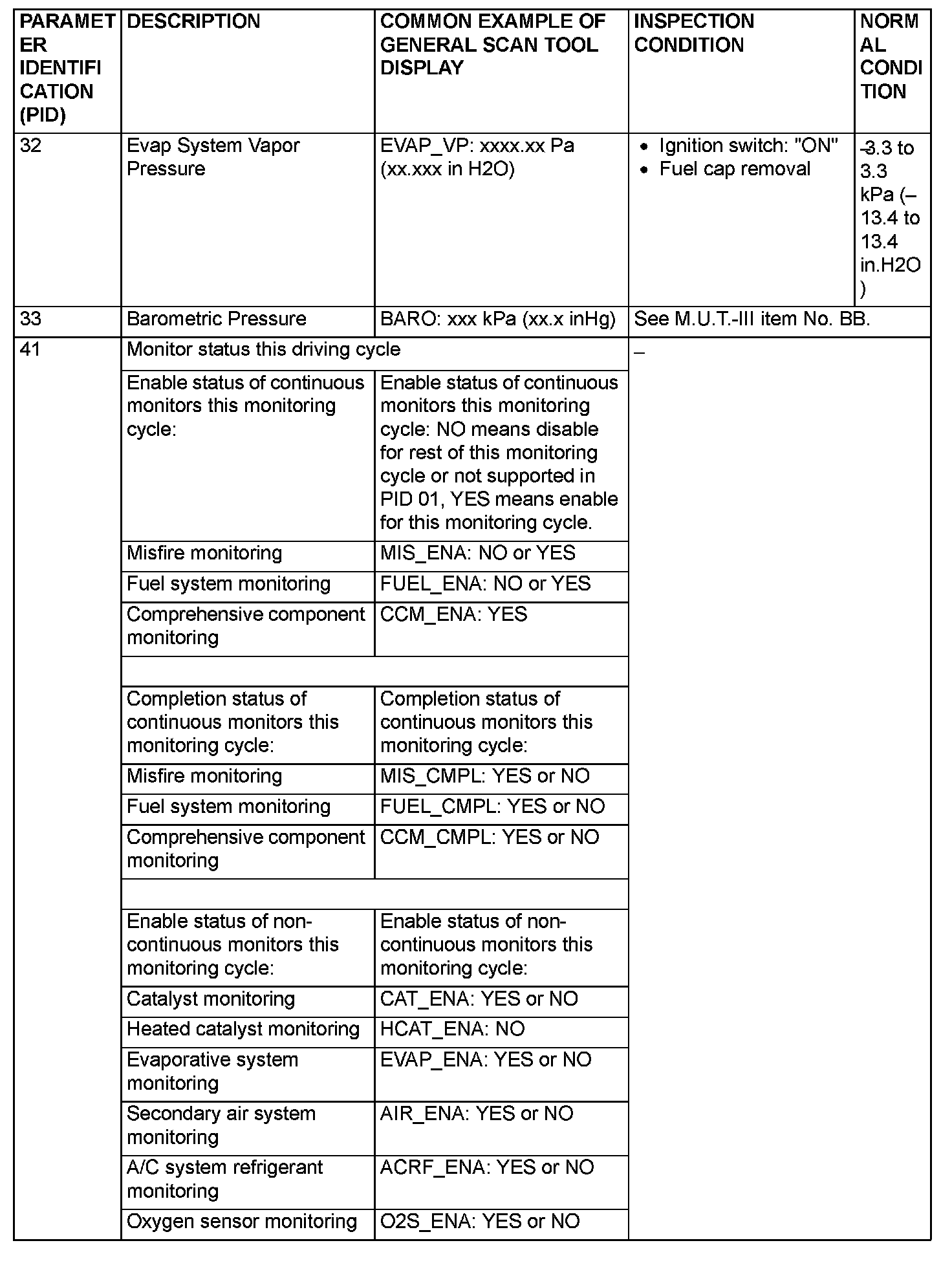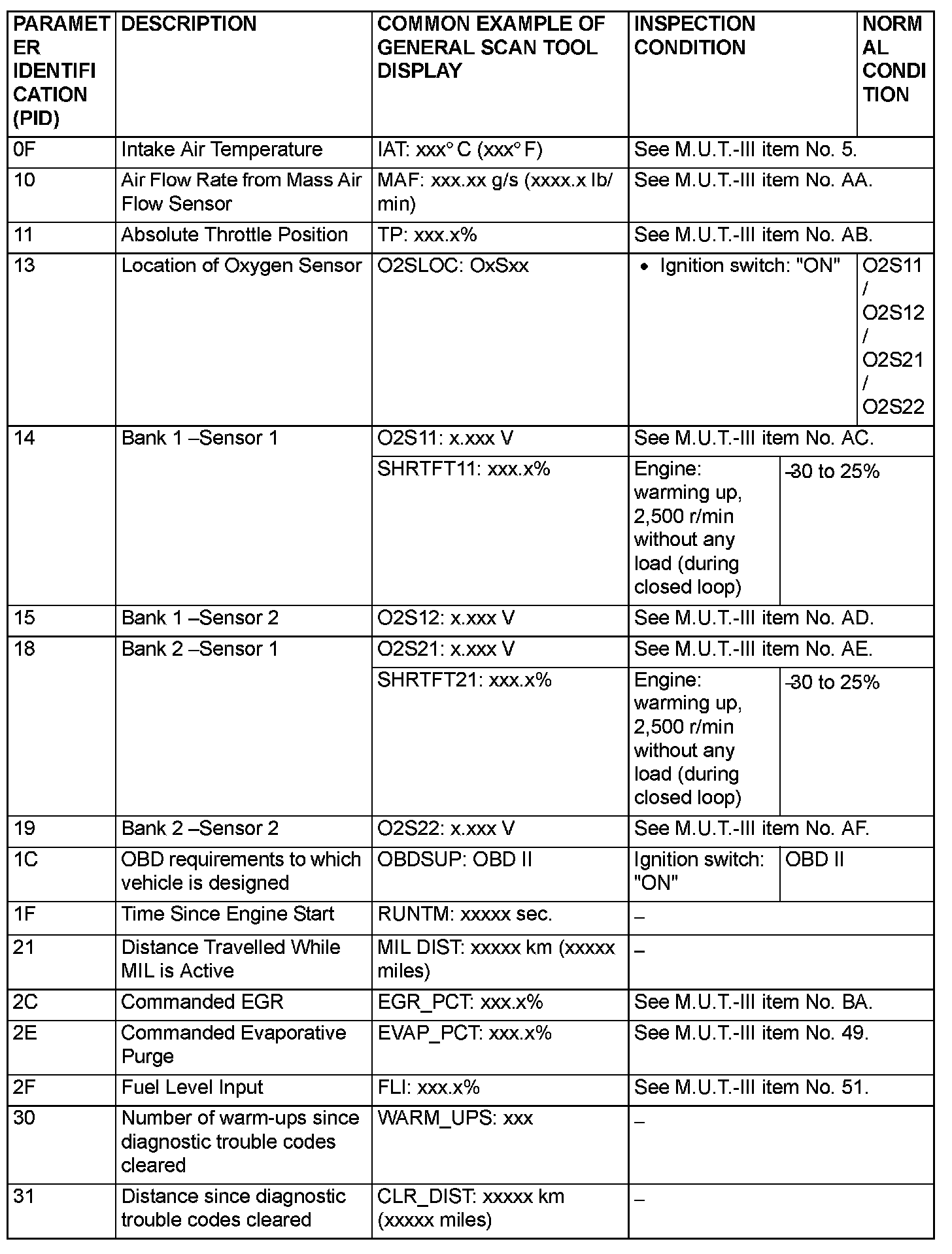 NOTE: GST MODE 01 can be accessed through the use of a general scan tool.