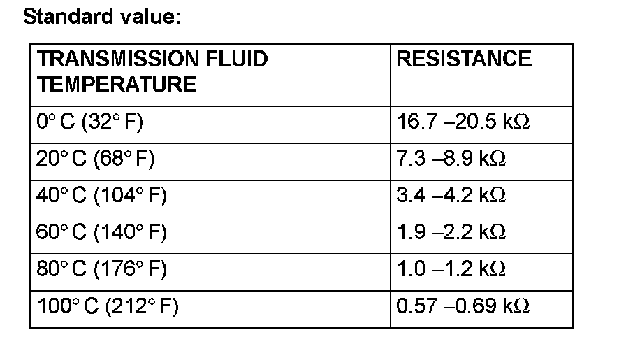TRANSMISSION FLUID TEMPERATURE SENSOR CHECK1. Remove the transmission fluid temperature sensor.