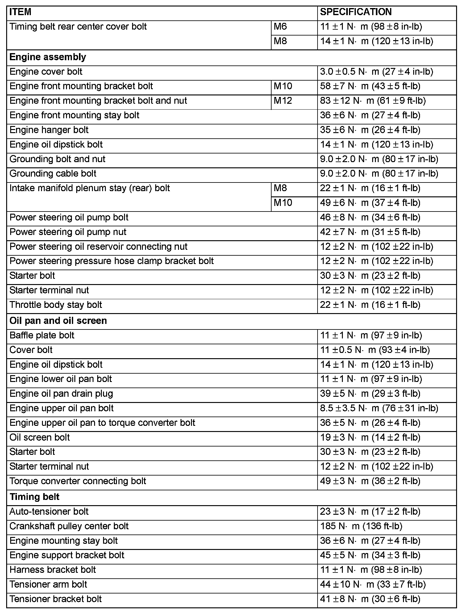Crankshaft center pulley bolt 185 ± 5 Nm (136 ± 3 ft-lb)