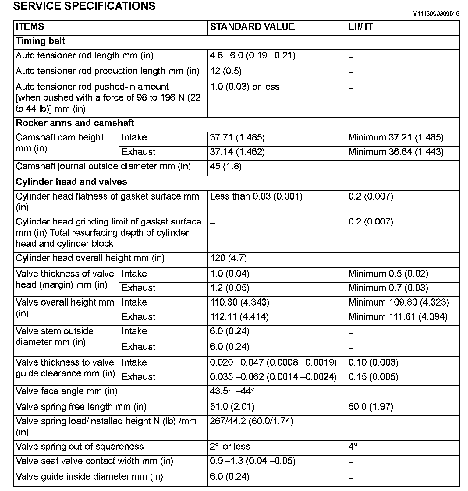 SERVICE SPECIFICATIONS (PART 2) (Updated Per TSB# 06-11-006):
