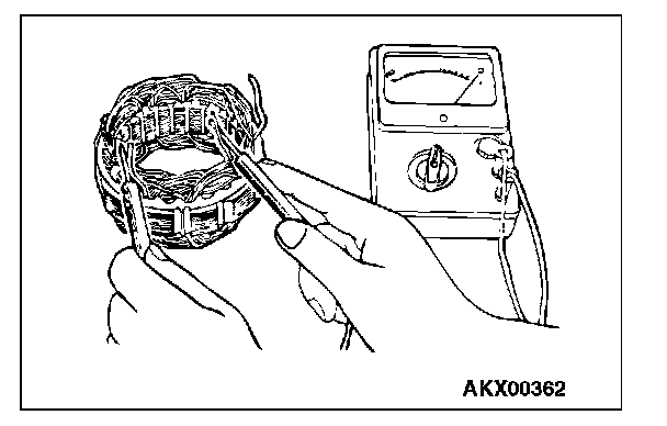 2. Check the continuity between the negative rectifier and the stator coil lead connection terminal with a tester. If there is continuity between the terminals, the diode is grounded, so replace the rectifier.