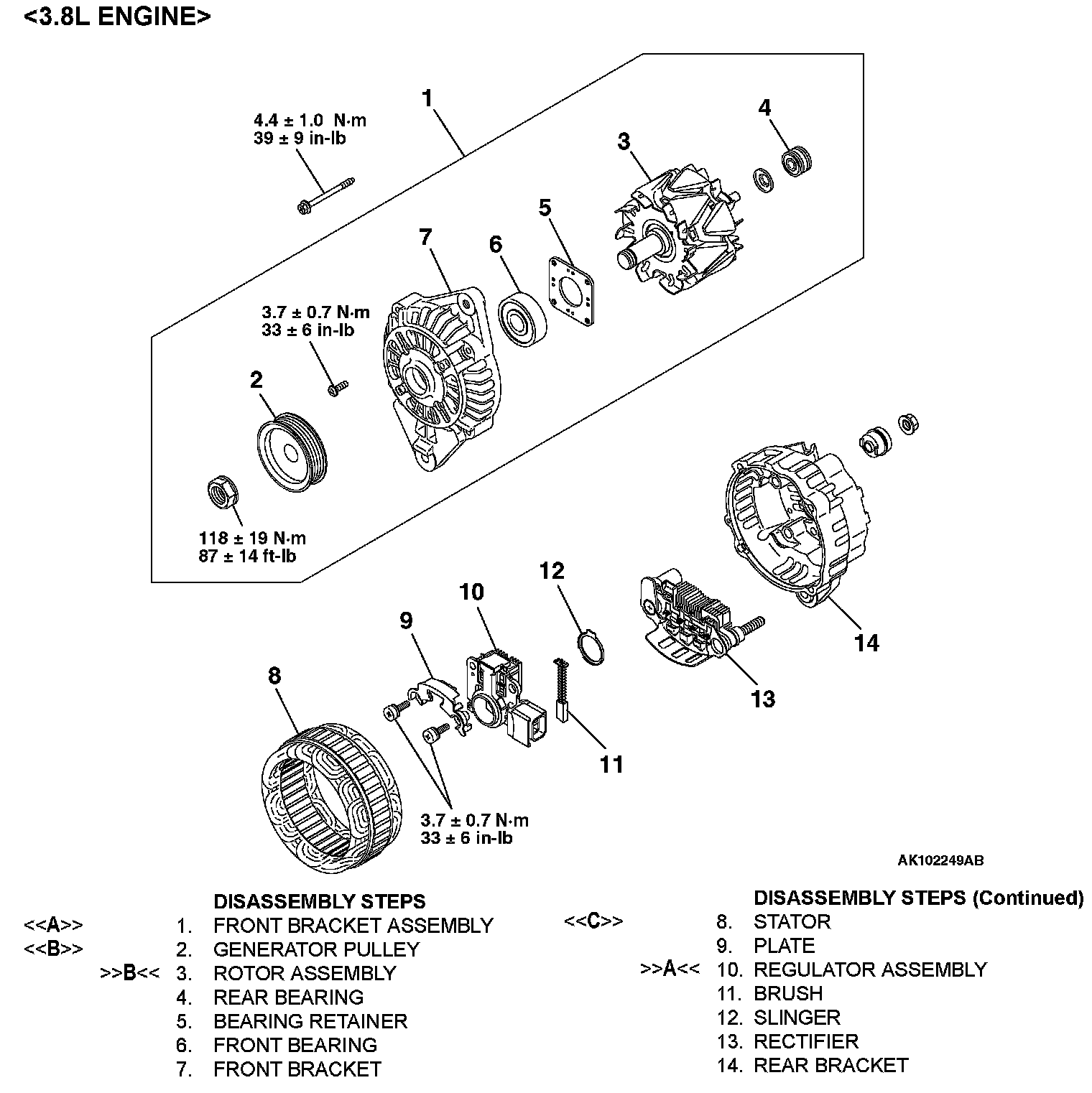GENERATOR ASSEMBLYDisassembly Steps 1-14: