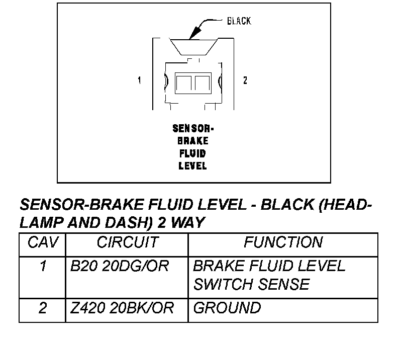 Sensor-Brake Fluid Level - Black (Headlamp And Dash) 2 Way: