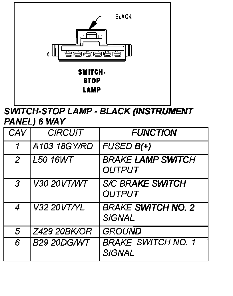 Switch-Stop Lamp - Black (Instrument Panel) 6 Way: