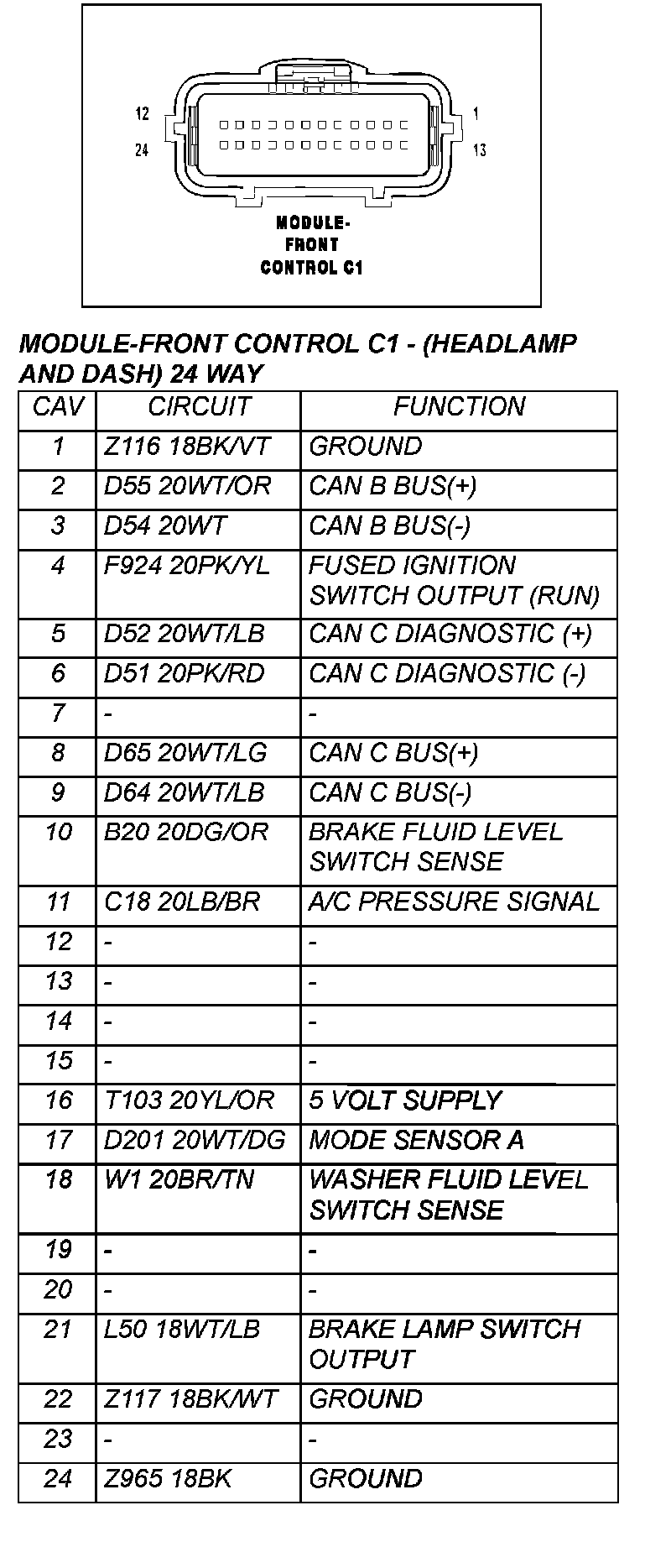 Module-Front Control C1 - (Headlamp And Dash) 24 Way: