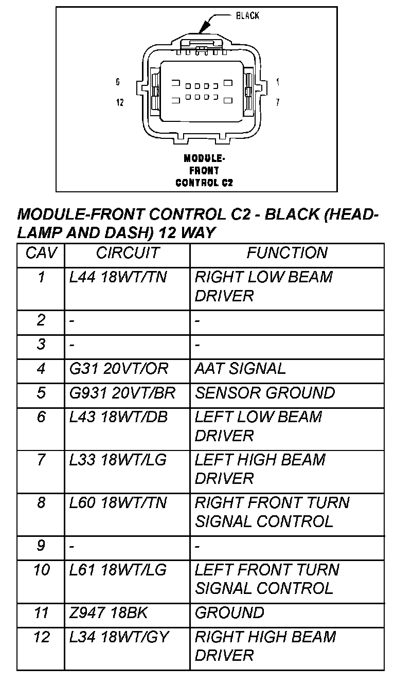 Module-Front Control C2 - Black (Headlamp And Dash) 12 Way: