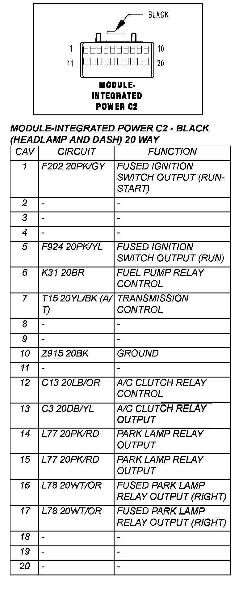 Module-Integrated Power C2 - Black (Headlamp And Dash) 20 Way: