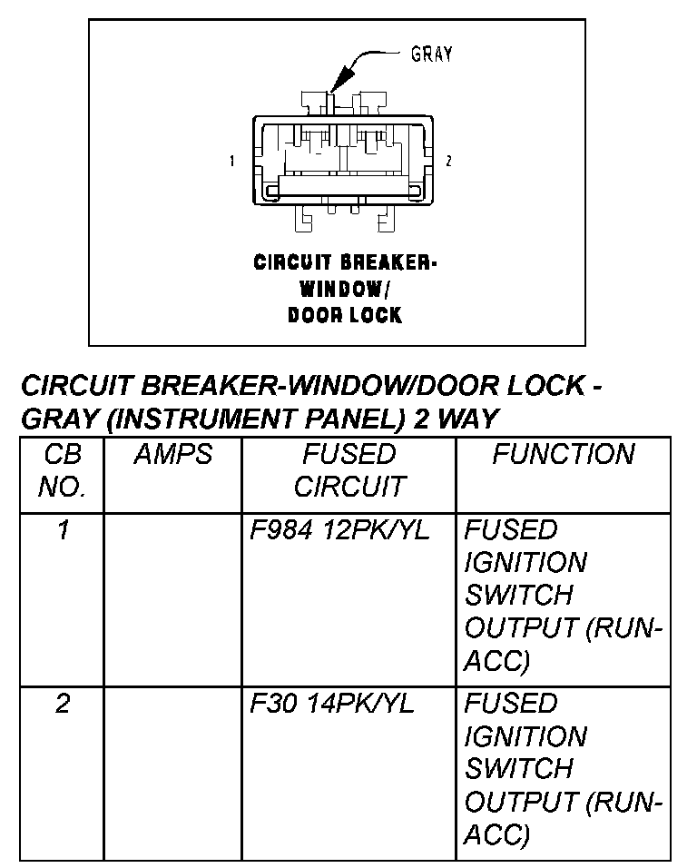 Circuit Breaker-Window/Door Lock - Gray (Instrument Panel) 2 Way: