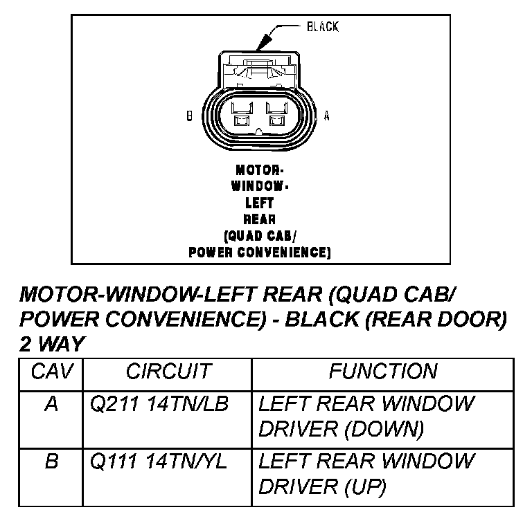 Motor-Window-left Rear (Quad CAB/Power Convenience) - Black (Rear Door) 2 Way: