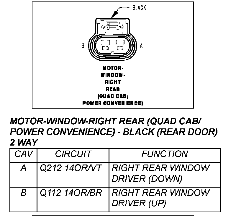 Motor-Window-Right Rear (Quad CAB/Power Convenience) - Black (Rear Door) 2 Way: