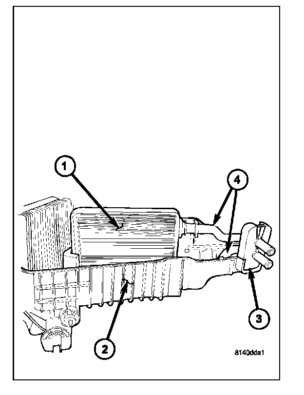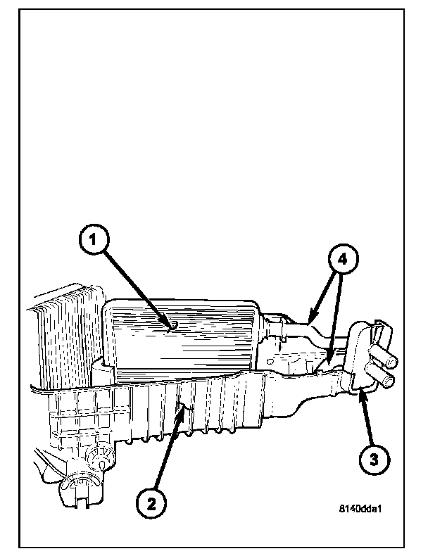 1. If removed, install the rubber flange (3) over the heater core tubes (4).