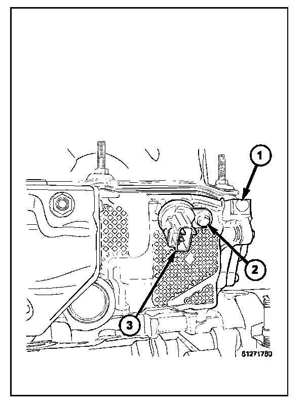 REMOVALThe Camshaft Position Sensor (CMP) (3) is bolted to the front/top of the right cylinder head (1).