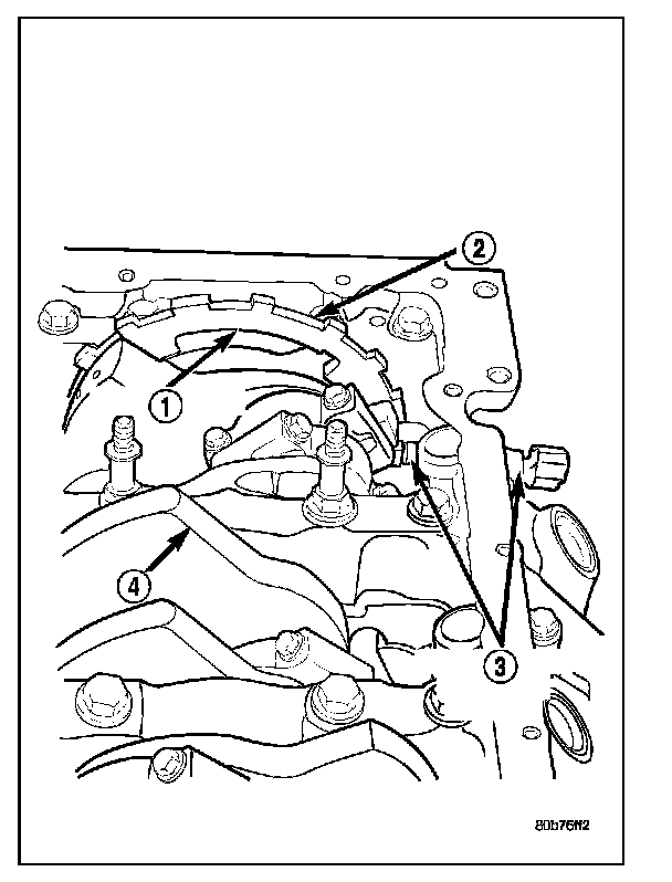 DESCRIPTIONThe Crankshaft Position (CKP) sensor (2) is mounted into the right rear side of the cylinder block. It is positioned and bolted into a machined hole.