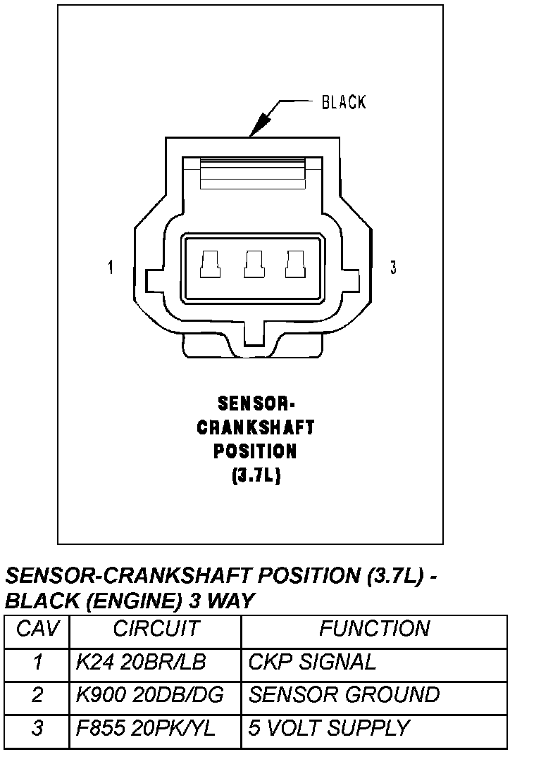 Sensor-Crankshaft Position (3.7L) - Black (Engine) 3 Way: