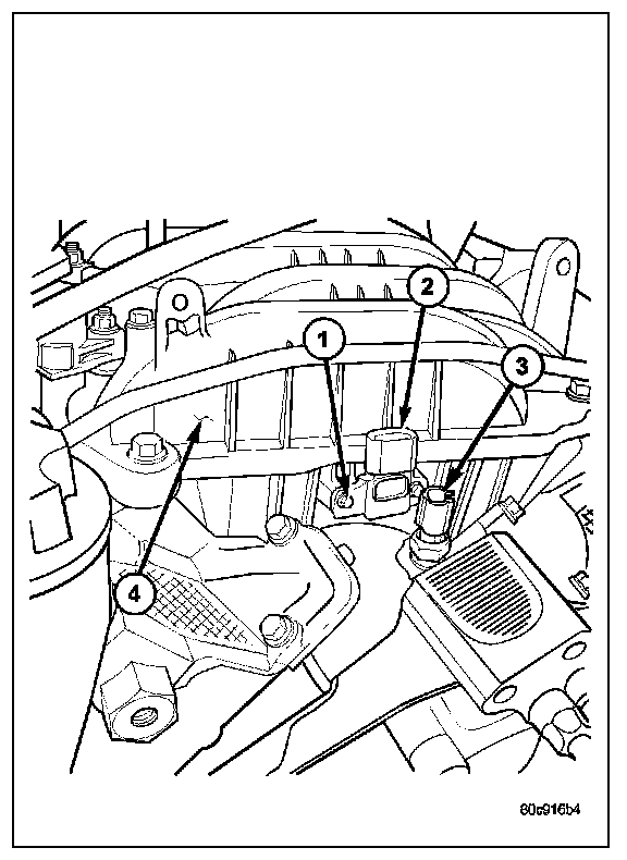 The Manifold Absolute Pressure (MAP) sensor (2) is mounted into the front of the intake manifold. An O-ring is used to seal the sensor to the intake manifold .