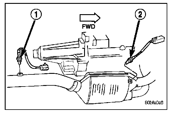 WARNING: The exhaust manifold, exhaust pipes and catalytic converter become very hot during engine operation. Allow engine to cool before removing oxygen sensor.