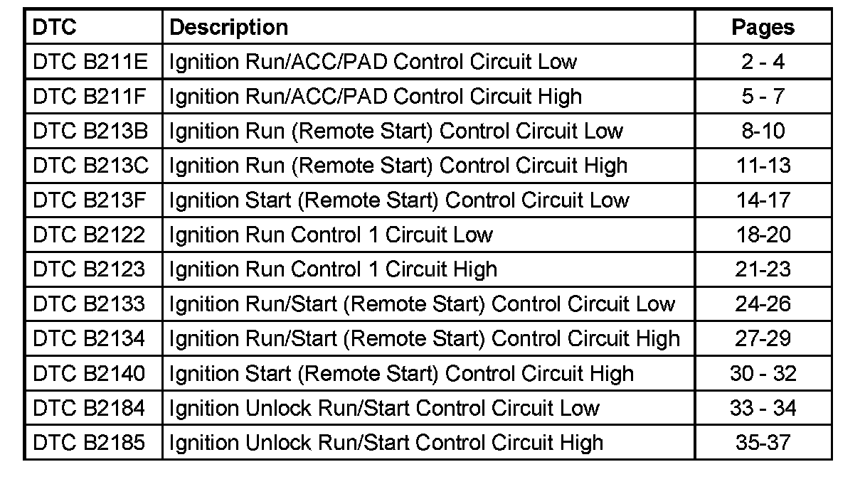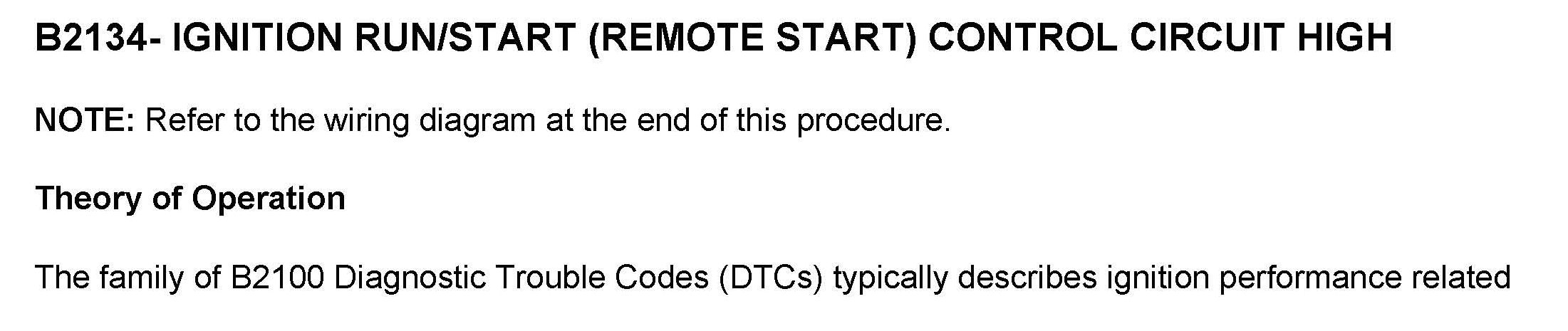 DTC B2134 Ignition Run/Start (Remote Start) Control Circuit High