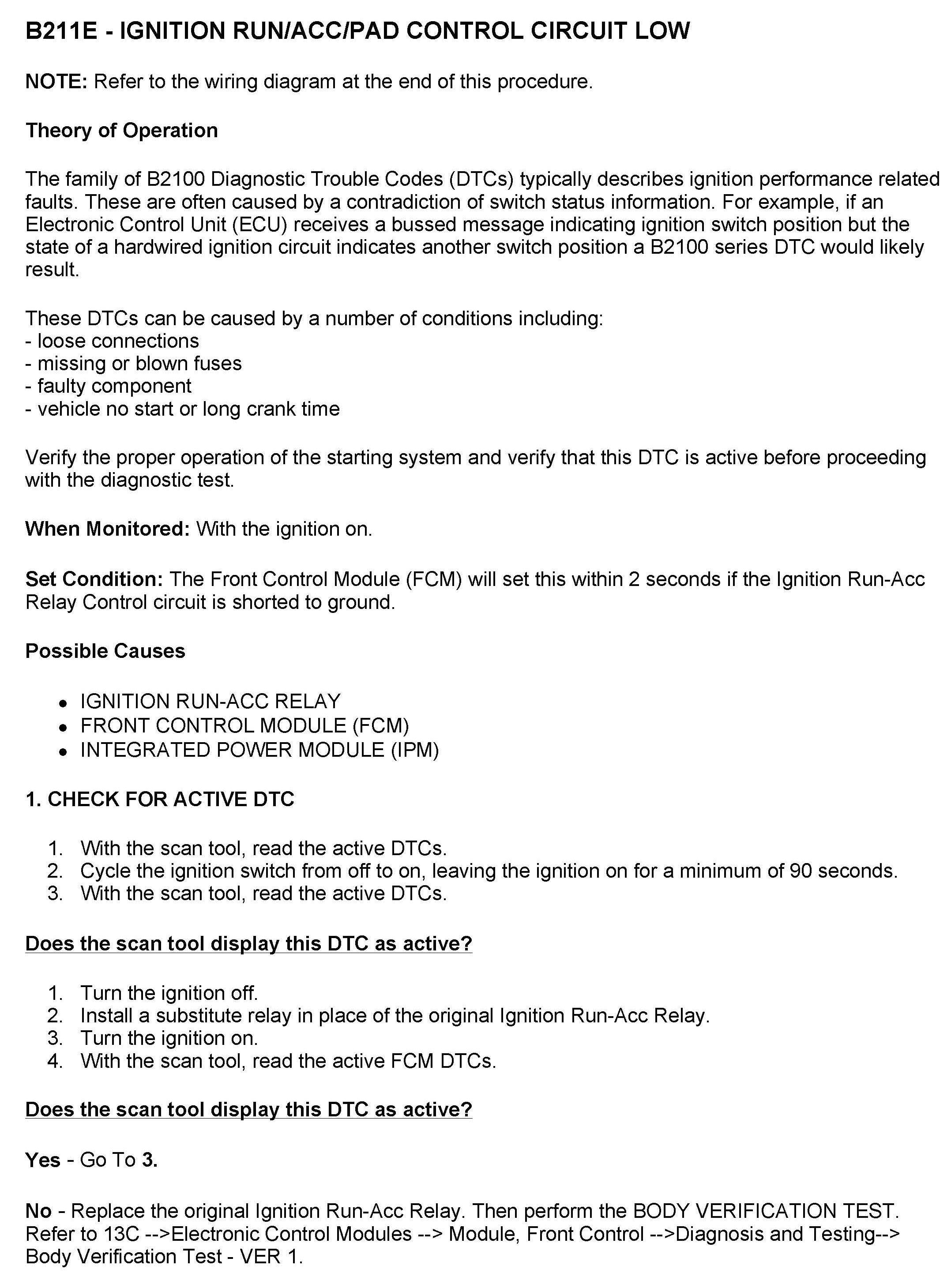 DTC B211E Ignition Run/ACC/PAD Control Circuit Low
