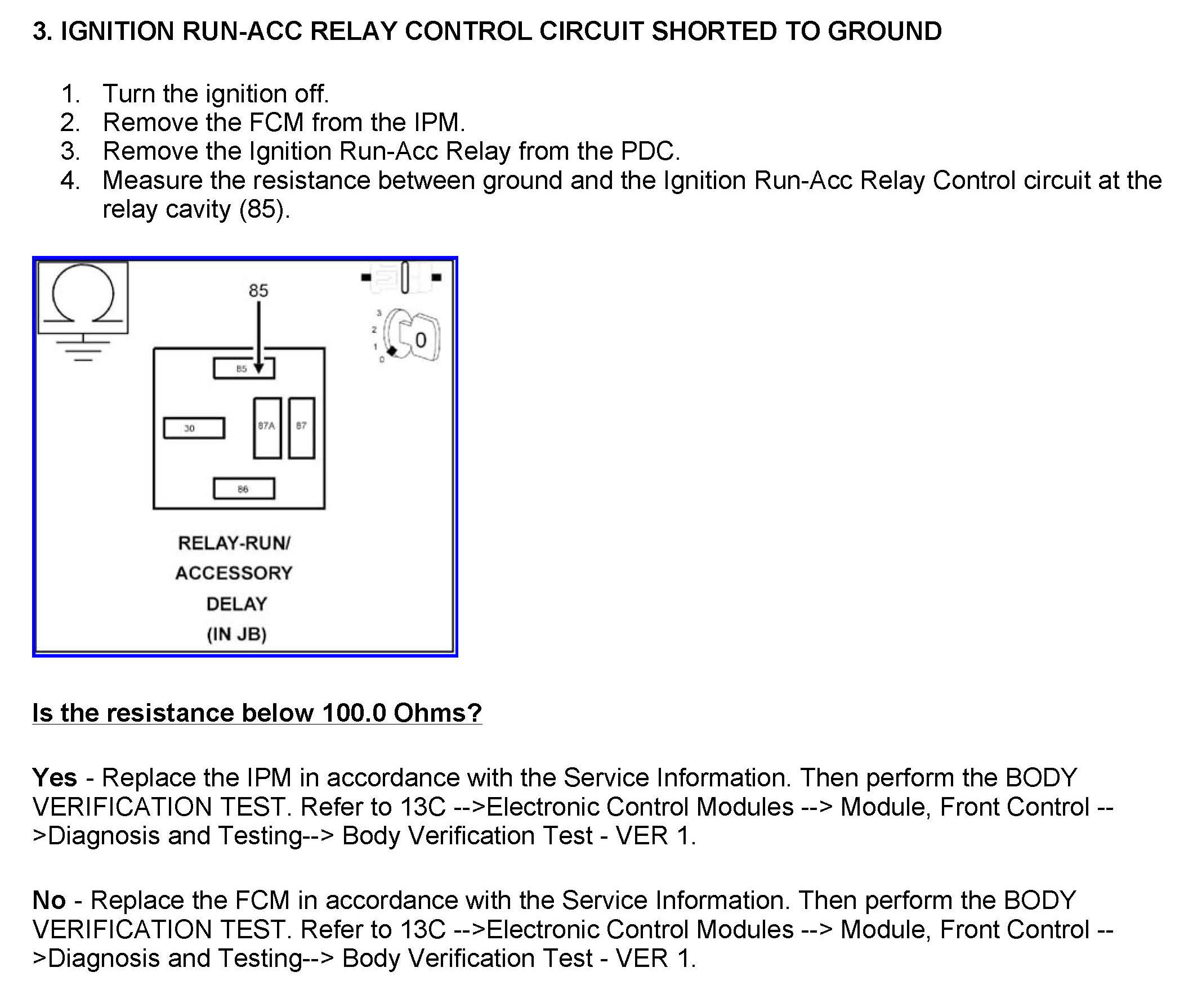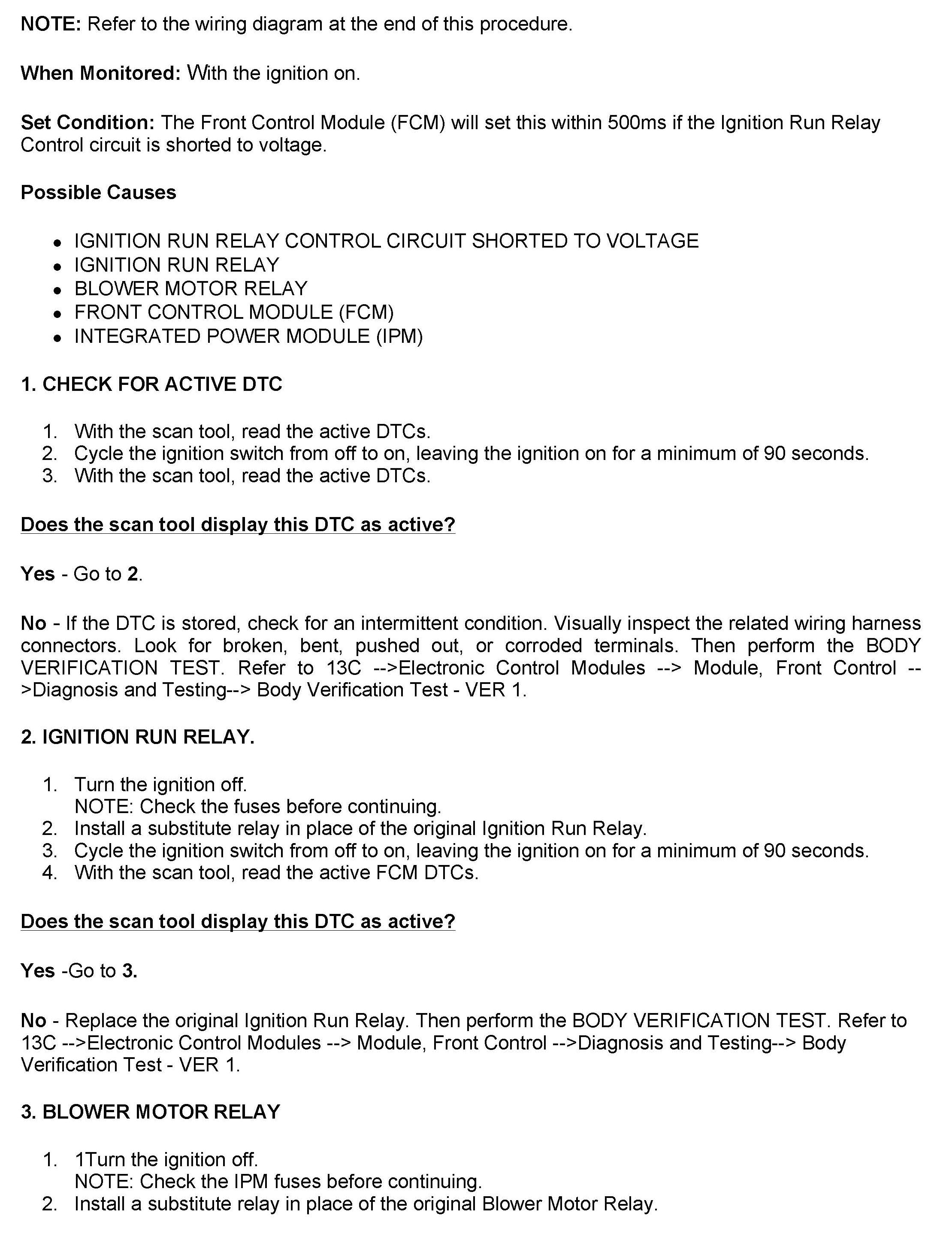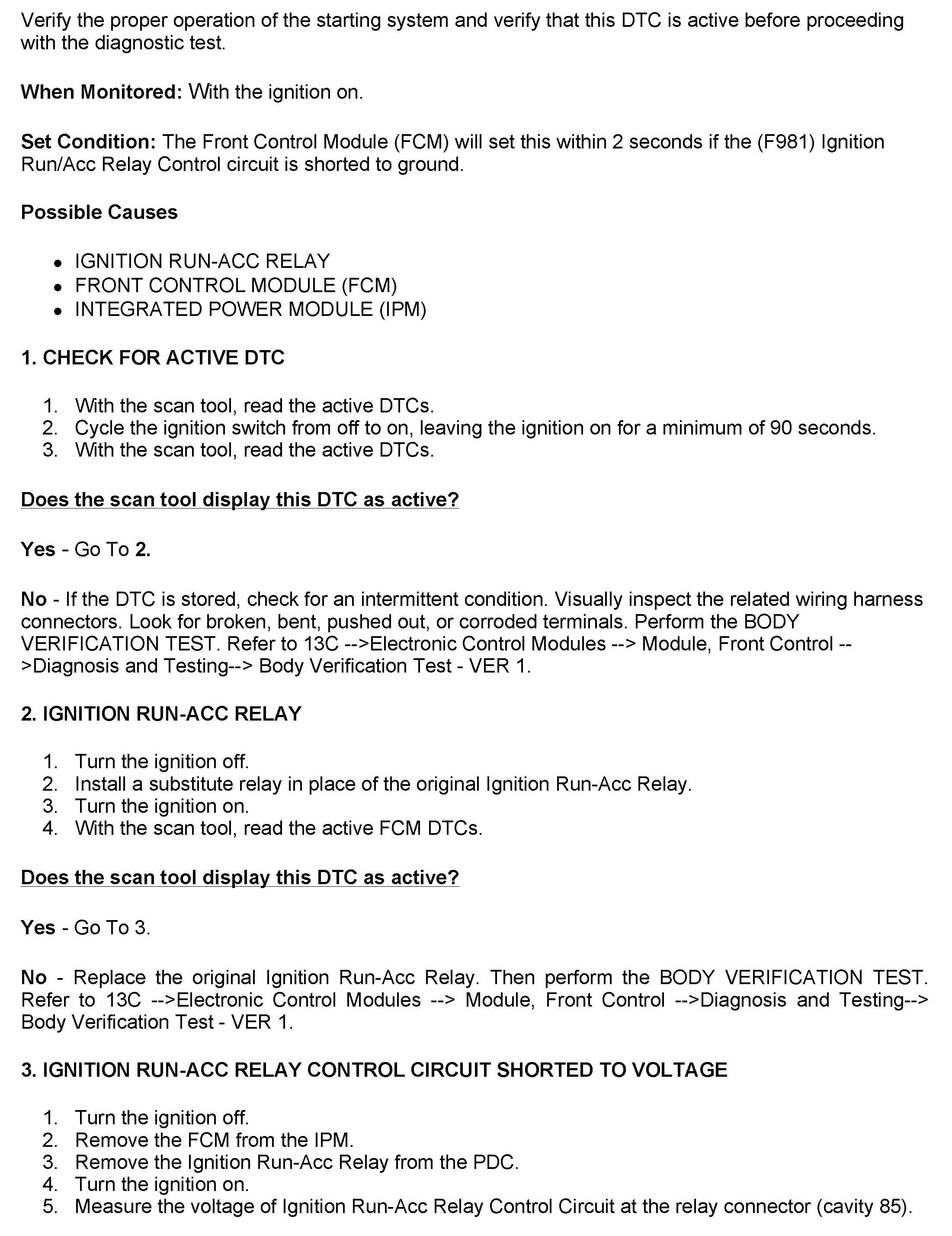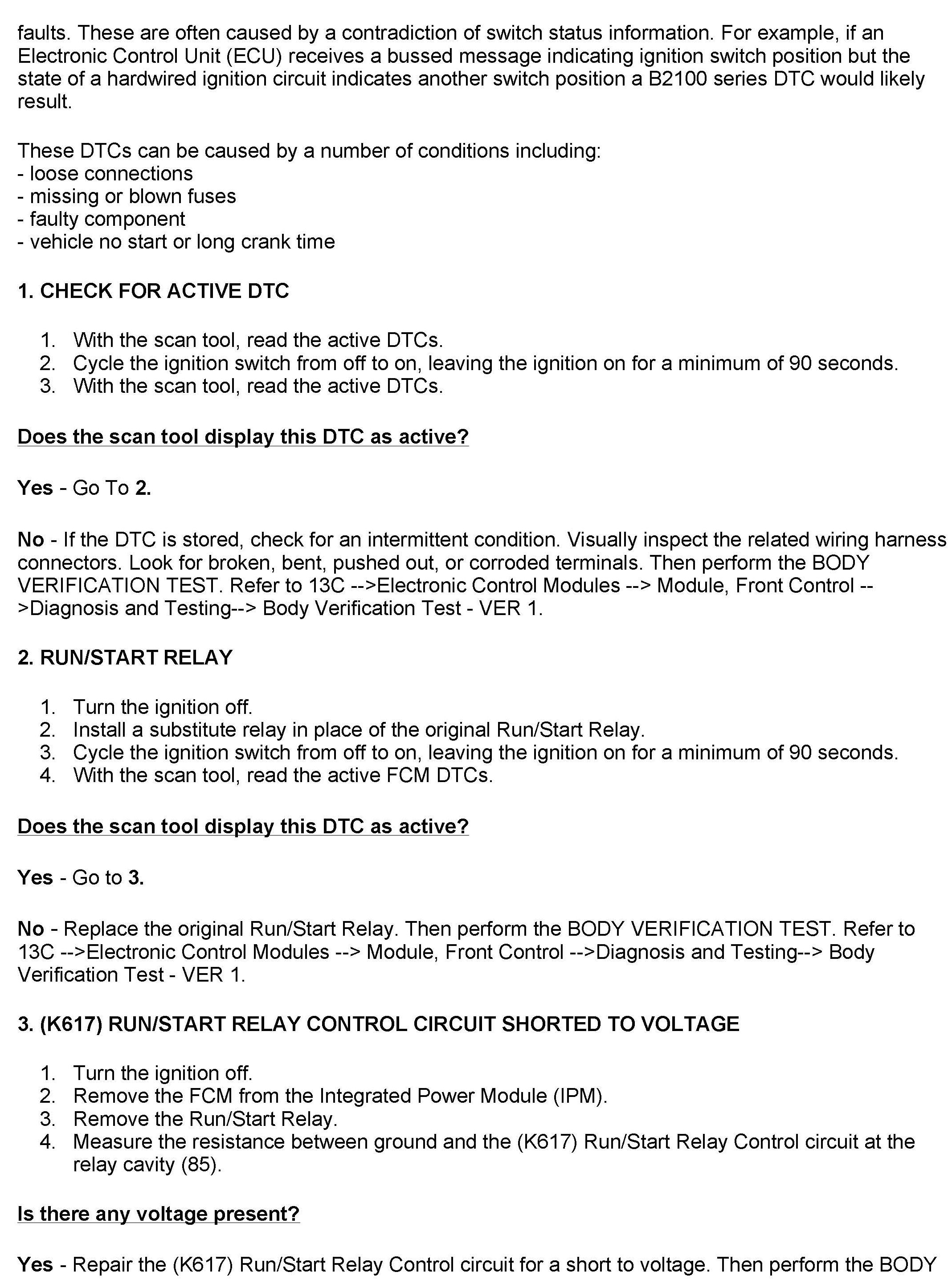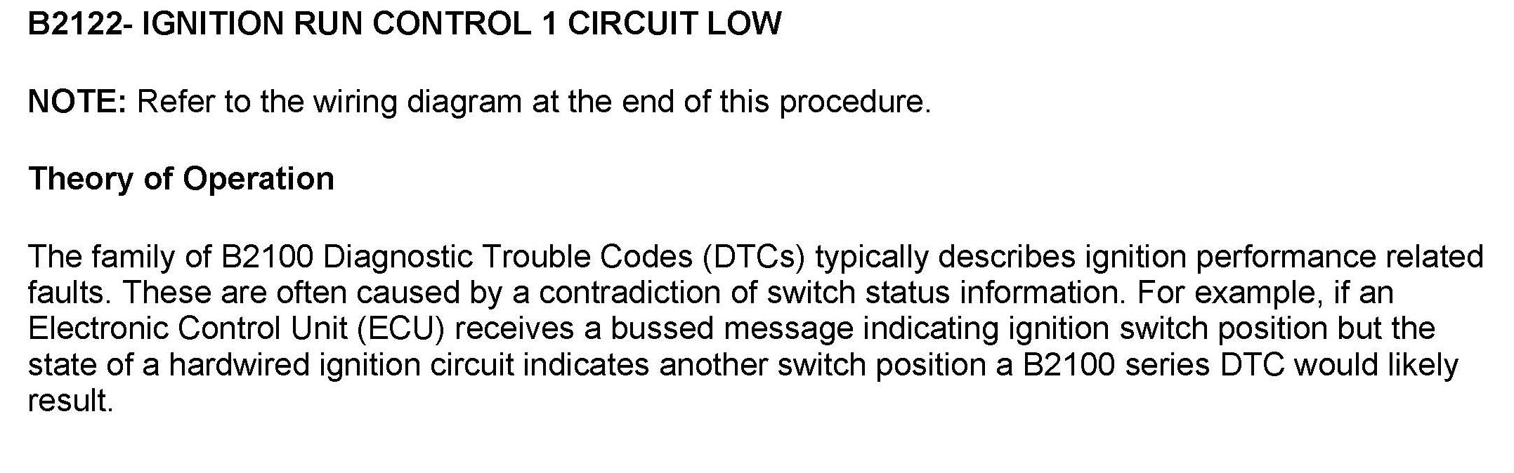 DTC B2122 Ignition Run Control 1 Circuit Low