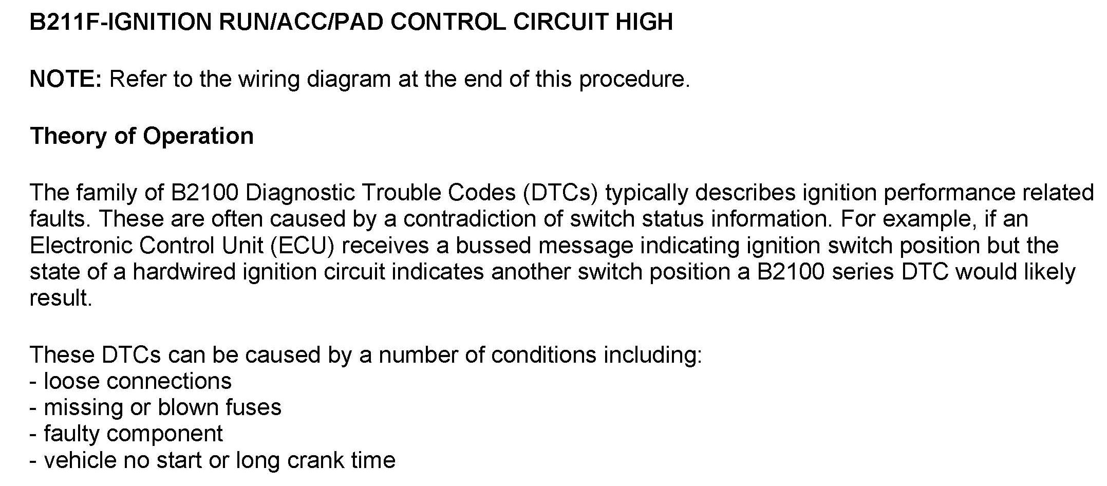 DTC B211F Ignition Run/ACC/PAD Control Circuit High