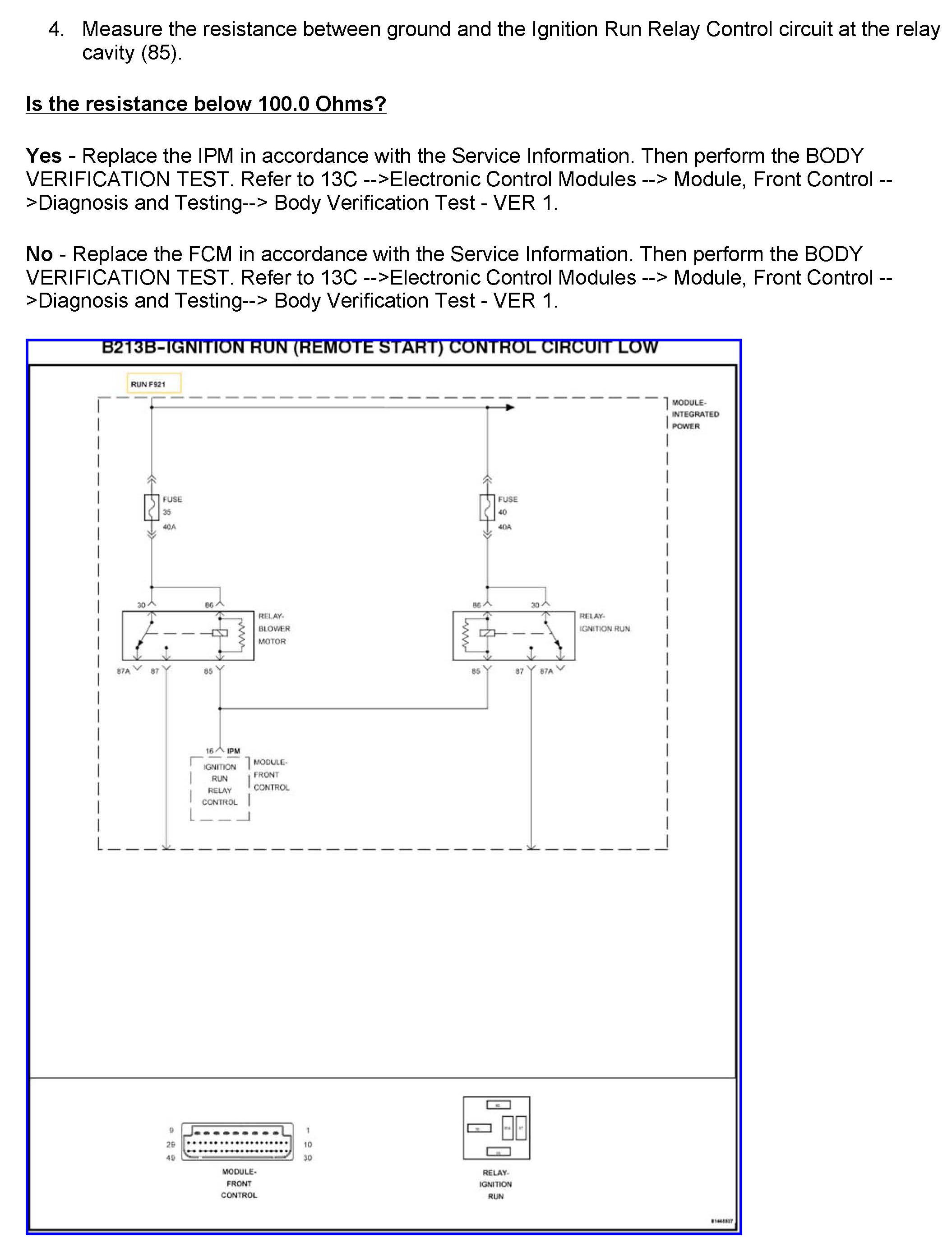 DTC B213C Ignition Run (Remote Start) Control Circuit High