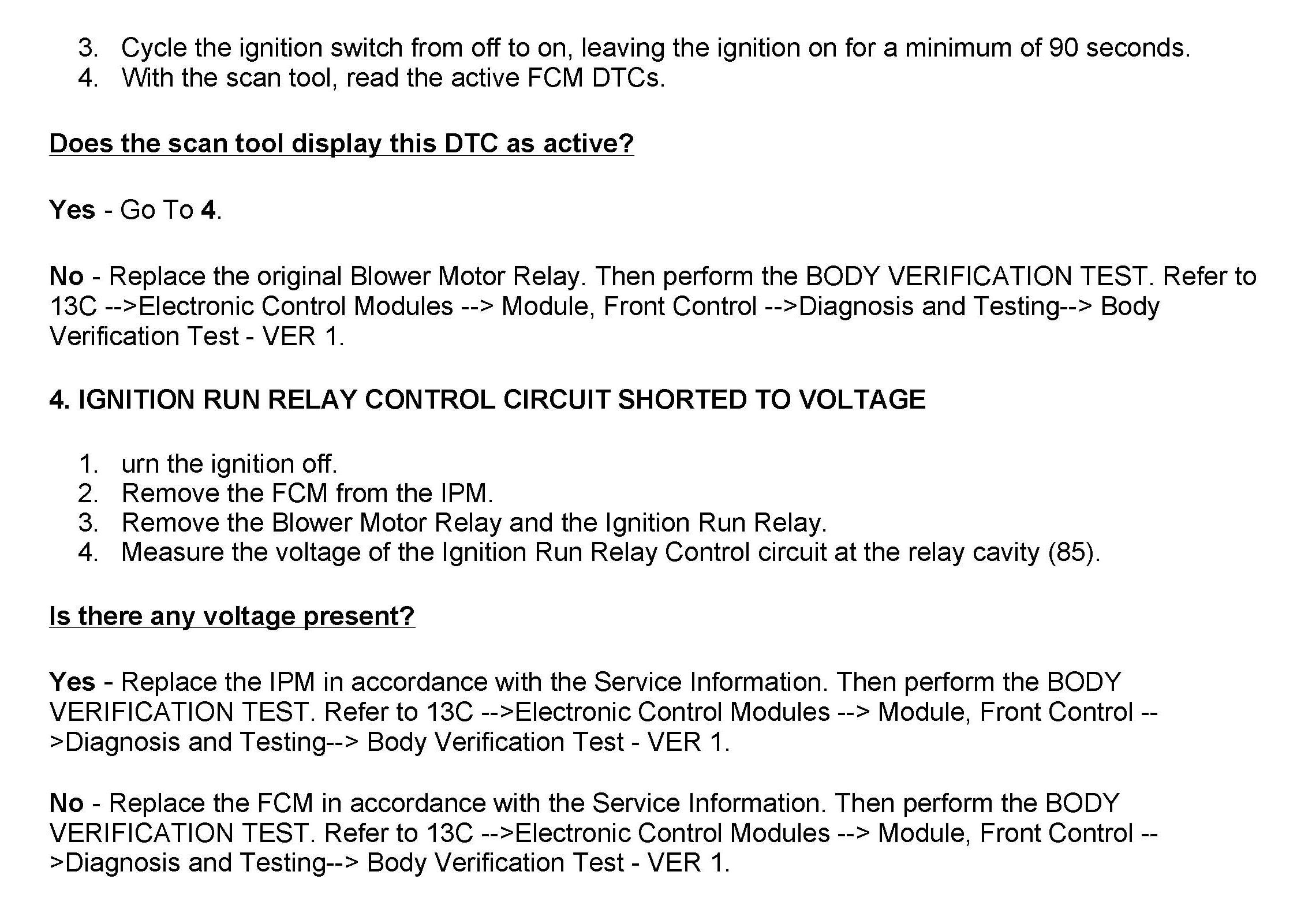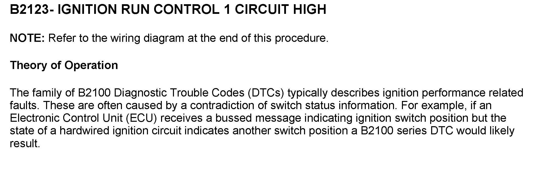 DTC B2123 Ignition Run Control 1 Circuit High